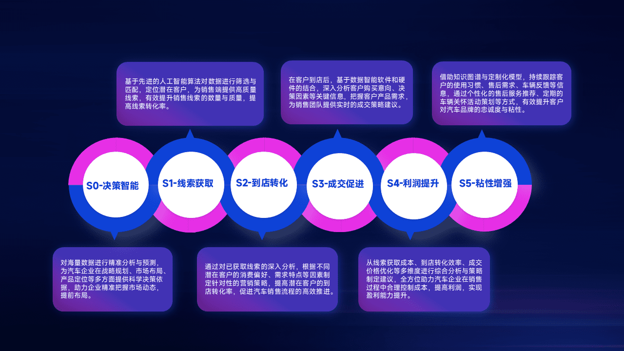 通过拓宽潜在客户来源、、优化线索分配并提高到店转化率,,以增强销售效率。。同时,,利用线索数据不断优化分析模型,,有效提升转化率,,扩大营销影响力。。。。